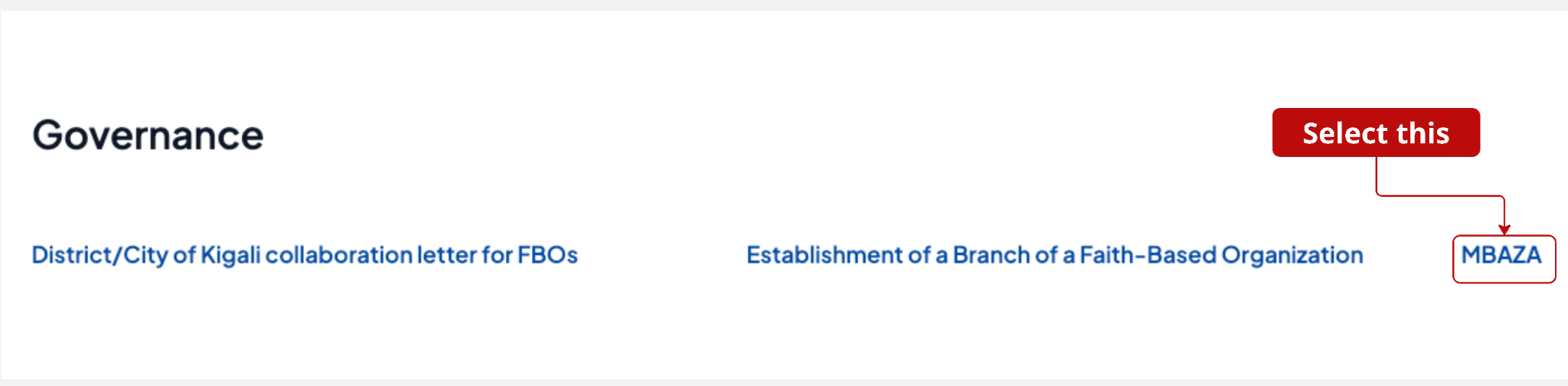 2. Under Governance, select “Mbaza.”
