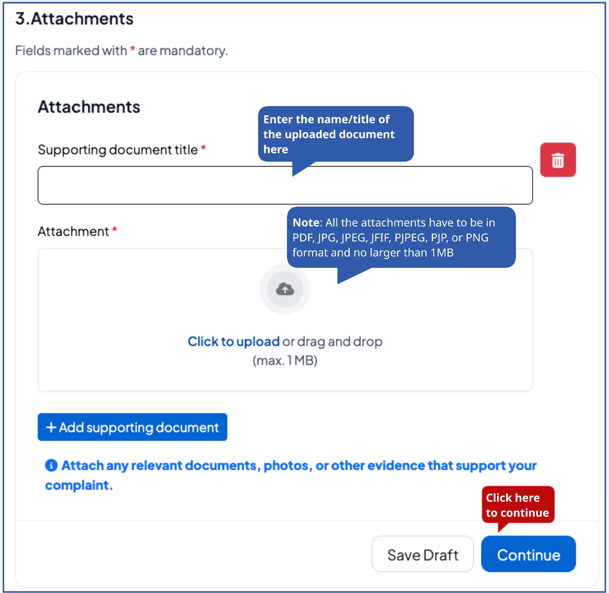 6. Upload any document or picture that can support your raised complaint