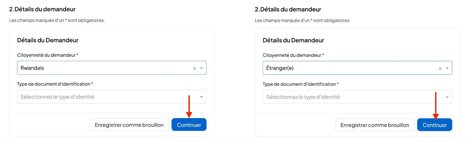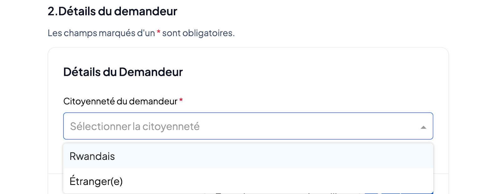 Choisissez si vous postulez en tant que citoyen rwandais ou en tant qu'étranger résidant légalement au Rwanda.