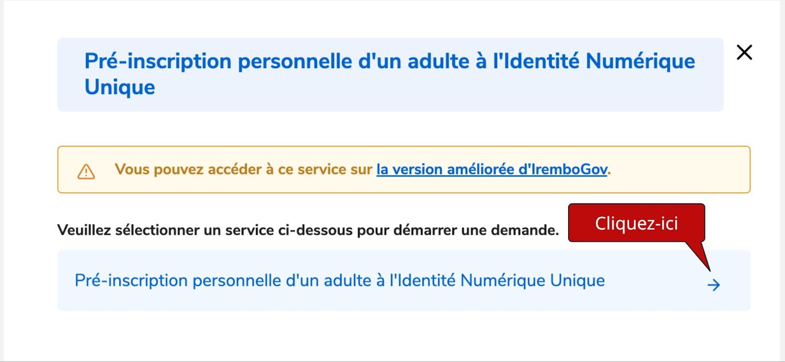 Pré-inscription personnelle d’un adulte à l’Identité Numérique, destinée aux demandeurs âgés de 18 ans et plus, et