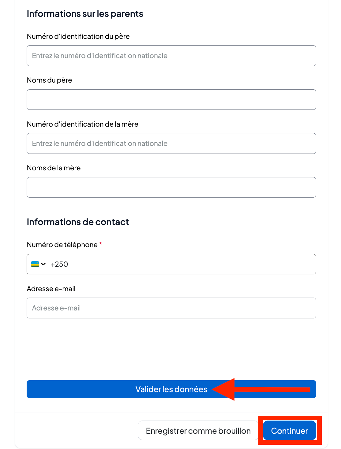 Si vous êtes rwandais, saisissez votre numéro de carte d'identité nationale ou votre numéro de demande NIDA. Si vous êtes étranger, saisissez votre numéro d'identification d'étranger.