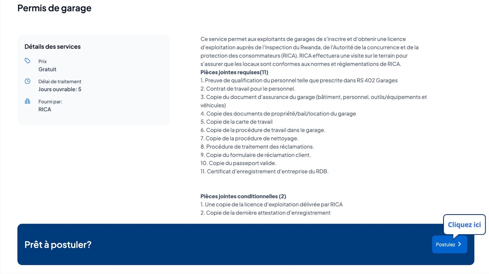 Après avoir sélectionné “Permis de garage”,ensuite cliquez sur “Postulez”.