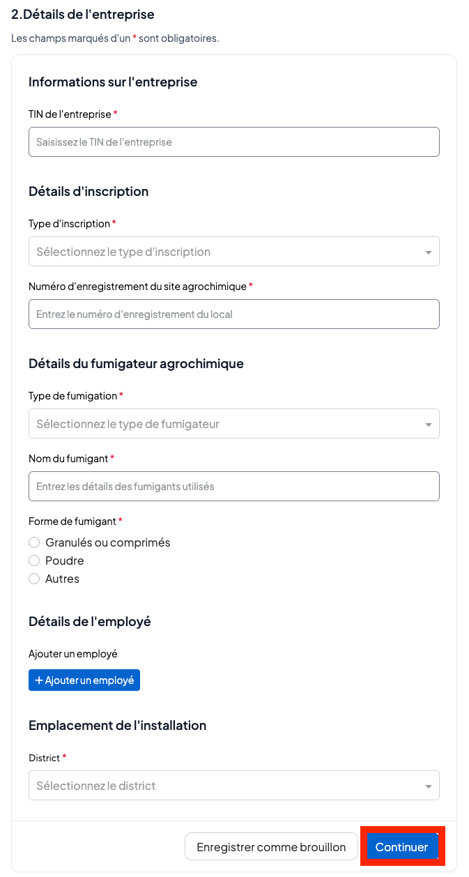 Saisissez les informations de l’entreprise telles que requises.
