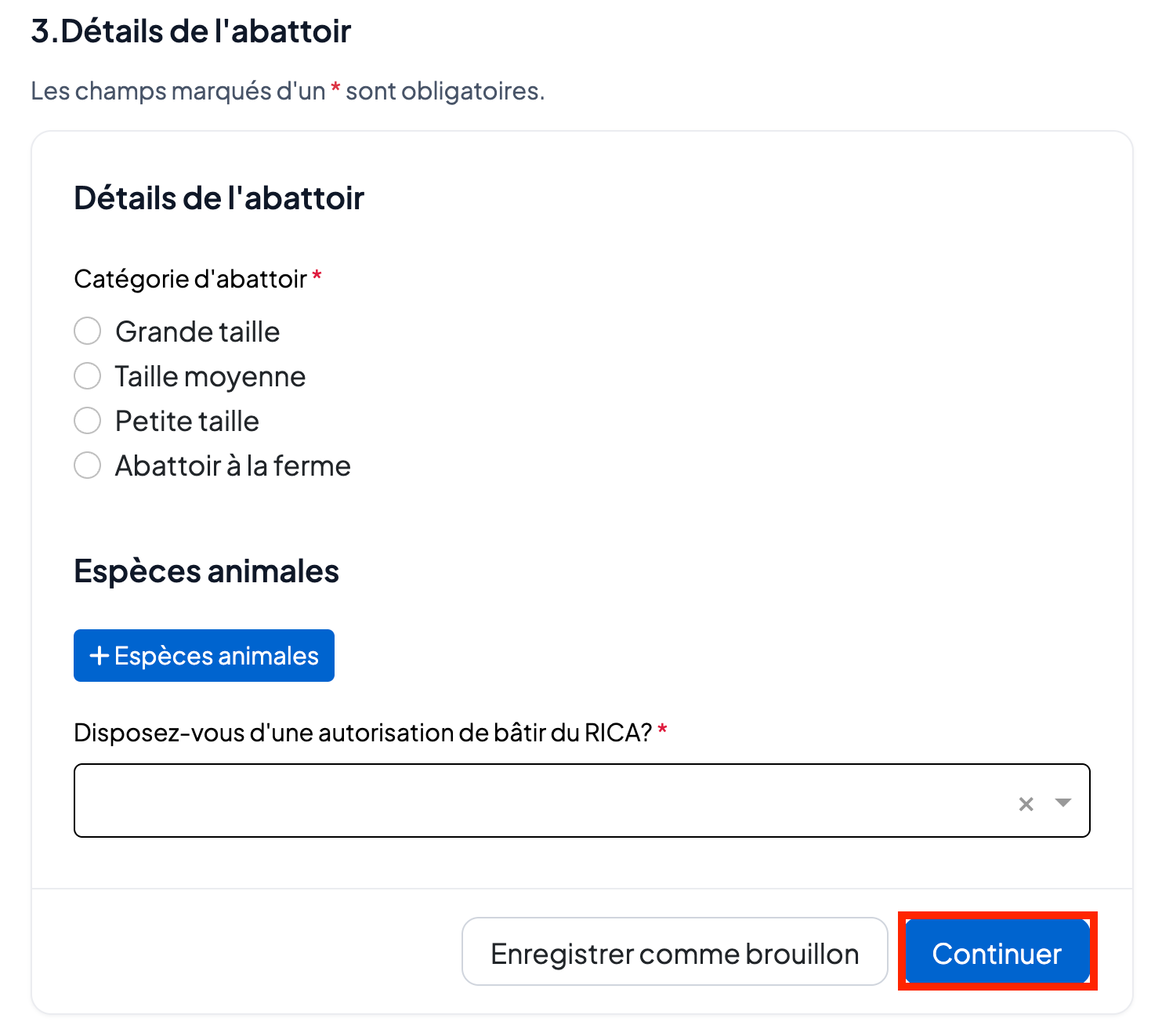 Remplissez les informations de l’abattoir.