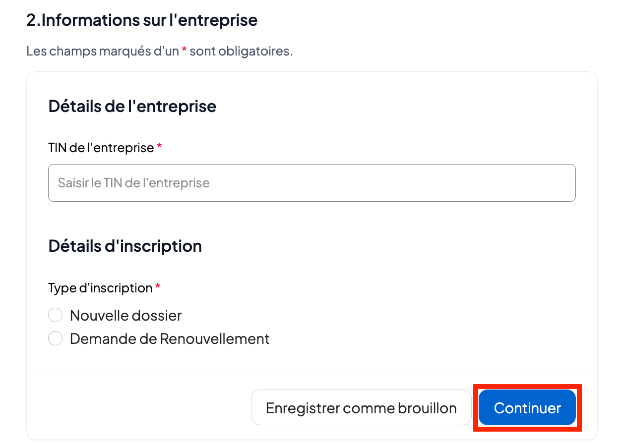 Une entreprise ou un particulier doit disposer d’un Numéro d’Identification Fiscale (TIN).
