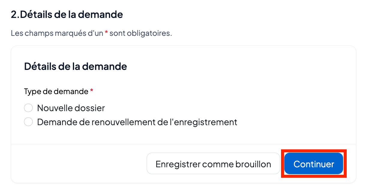 Vérifiez que les informations sont exactes, saisissez un numéro de téléphone et/ou une adresse e-mail, cochez la case de vérification, puis cliquez sur “Créer la demande”.
