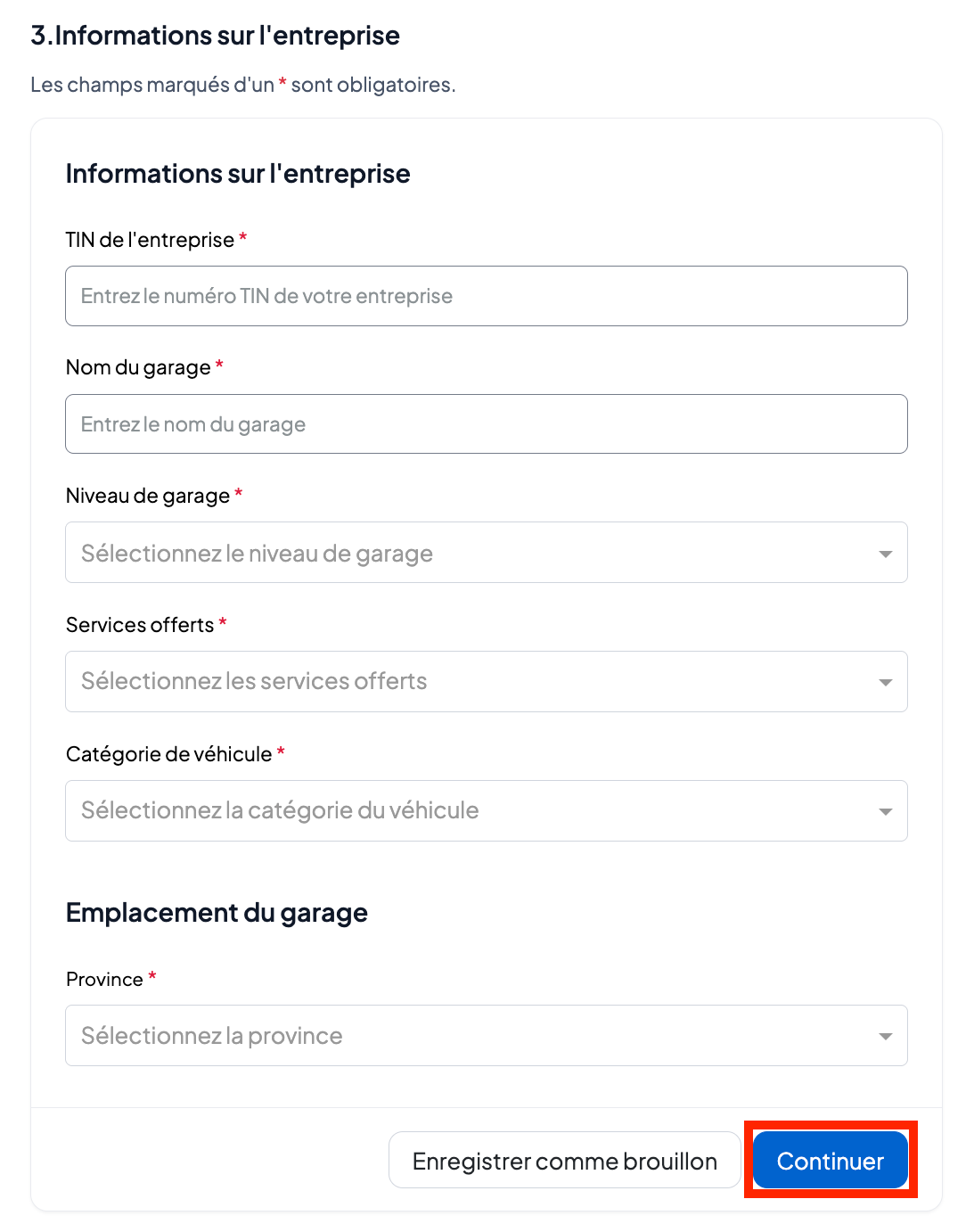 Suivez ces étapes simples pour faire l'enregistrement du garage: