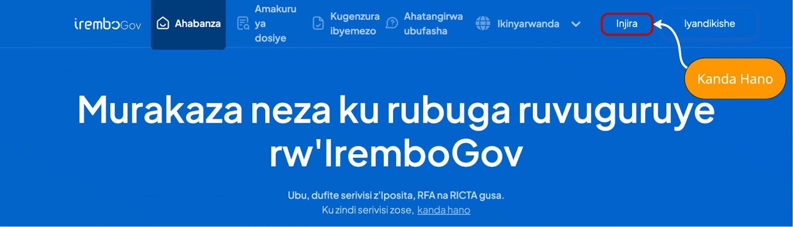 Intambwe ya 1: Sura urubuga rwa Irembo kuri new.irembo.gov.rw maze winjire muri konti yawe. Niba nta konti ufite kanda hano umenye uko wayifungura
