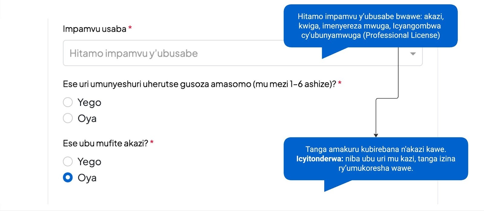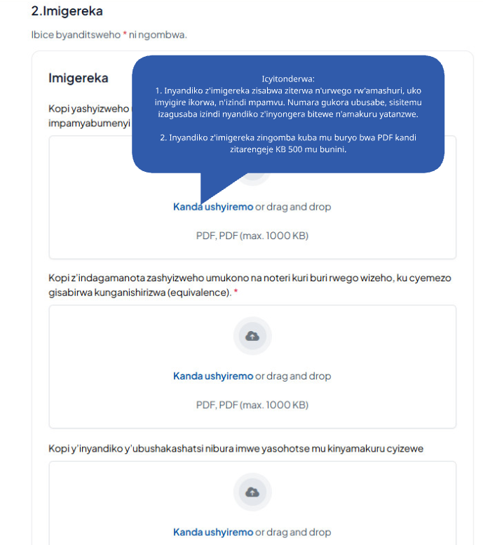 Izi nyandiko zikurikira zisabwa ku bantu bose basaba iyi serivisi: