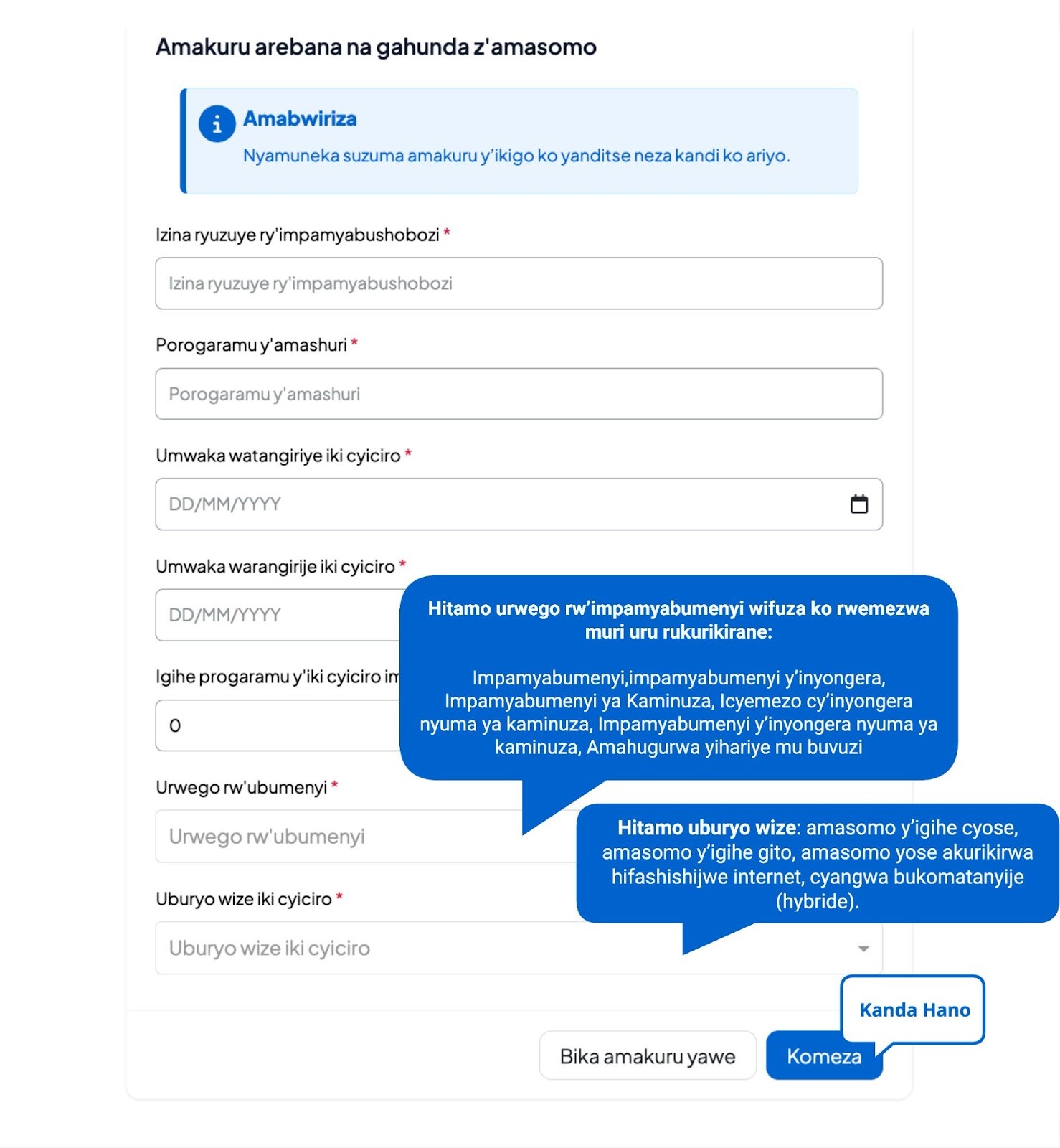 Intambwe ya 6: Andika amakuru y’ikigo cyatanze impamyabumenyi iri gusabwirwa inganyisha, nkuko ubisabwe.