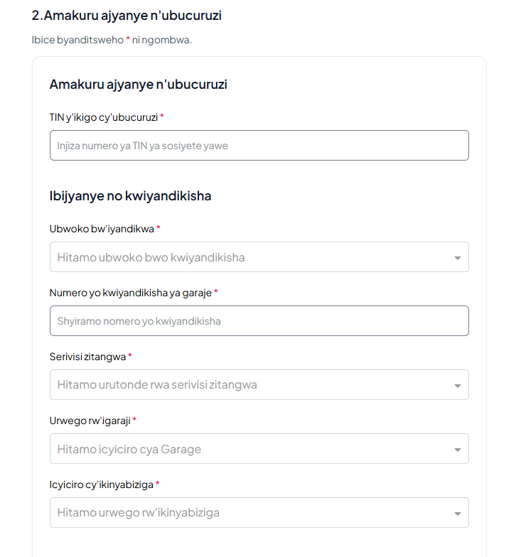 Iyi serivisi ituma abakora ubucuruzi bwa garaje biyandikisha kandi bagahabwa uruhushya rwo gukora rutangwa n’Ikigo cy’Igihugu gishinzwe Ubugenzuzi, Ihiganwa n’Uburenganzira bw’Abaguzi (RICA). RICA izakora igenzura rikorwa aho garaje ikorera (field visit) kugira ngo hemezwe ko inyubako n’ibikorwa byujuje amahame n’amabwiriza ya RICA.